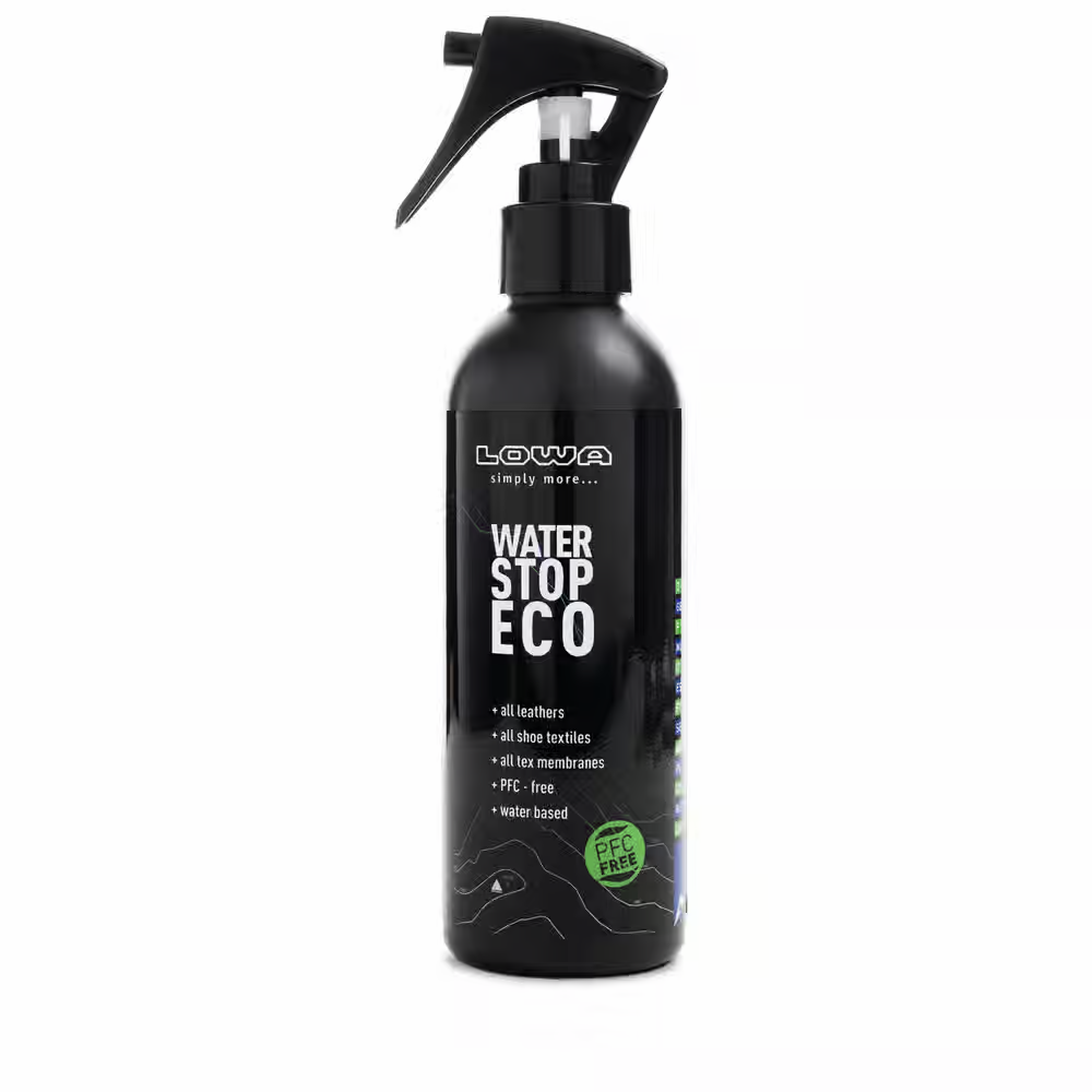 Impregnat LOWA WATER STOP ECO to wysoce wydajny spray impregnujący na bazie wody do wszystkich butów rekreacyjnych, górskich i trekkingowych LOWA. Skutecznie chroni i impregnuje wszystkie materiały przed wnikaniem wody i brudu, nie ograniczając ich oddychalności, przepustowości powietrza. Nadaje się do membran GORE-TEX i innych membran klimatycznych. W połączeniu z LOWA ACTIVE CREME Neutral/Black zapewnia idealną ochronę skórzanych butów LOWA. A co najlepsze? LOWA WATER STOP ECO jest produktem na bazie wody i nie zawiera PFC.