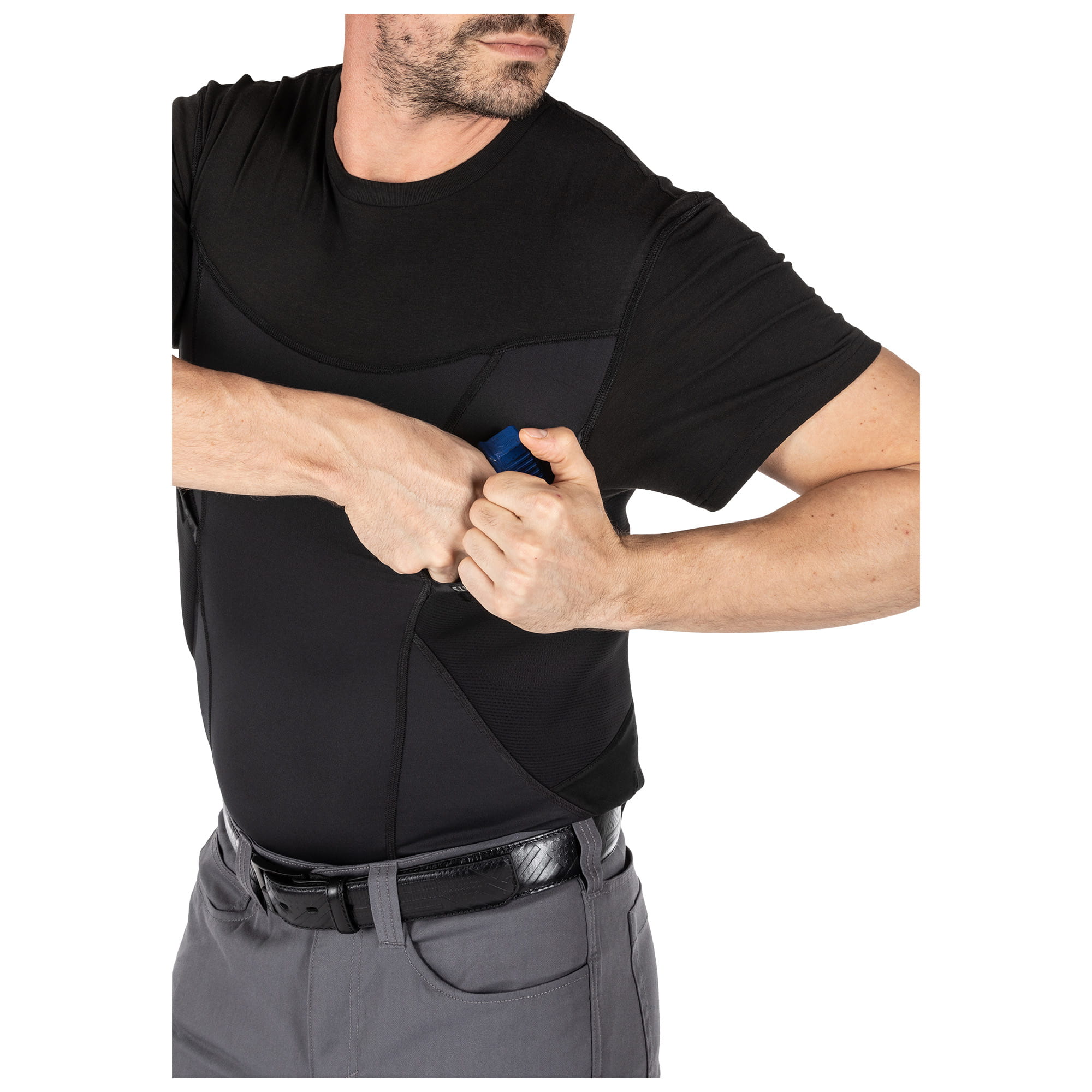 Koszulka Cams S/S Baselayer to kompresyjna koszulka z krótkim rękawem, doskonale nadająca się do noszenia ukrytej broni dzięki elastycznym kieszeniach po obu stronach, zapewniającym szybki dostęp do schowanych przedmiotów i zmniejszających szanse na zauważenie nietypowych konturów przy użytkowaniu w porównaniu do np. szelek taktycznych.