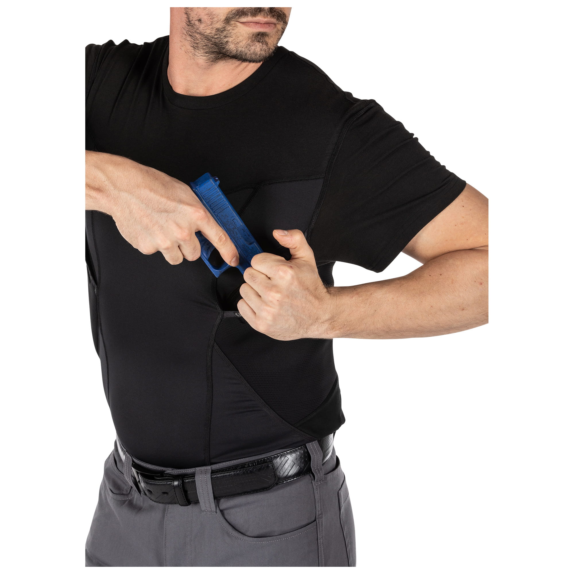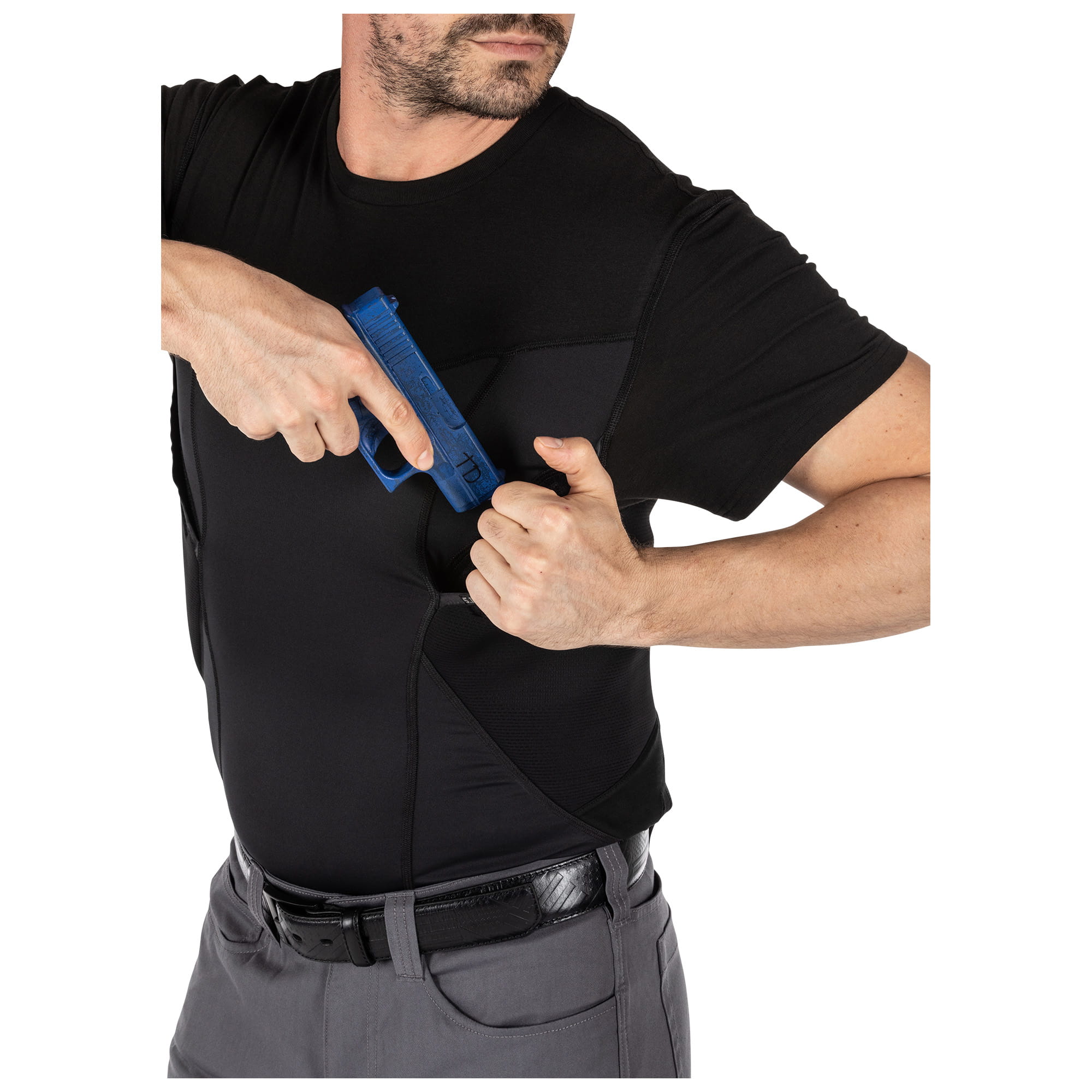 - Materiał - Kieszeń na broń: 92% poliester, 8% elastan, przekładka dystansowa, 8,8 uncji,