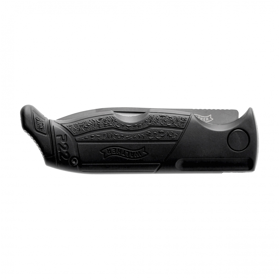 Elementem odpowiadającym za komfort pracy nożem odpowiadają lekkie okładziny z tworzywa G10. Jest to laminat szklano-epoksydowy, który cechuje się niskim ciężarem, wysoką wytrzymałością mechaniczną, odpornością na wodę, zmianę temperatur, a także działanie wielu kwasów i rozpuszczalników. Antypoślizgowe teksturowanie Hi-Grip jest identyczne z tym jakie producent nanosi na chwyt pistoletu Walther P22. Drobne fakturowanie oraz rowki zapewniają doskonałą przyczepność i zapobiega wyślizgiwaniu się noża ze spoconej lub mokrej dłoni. W zestawie Etui.