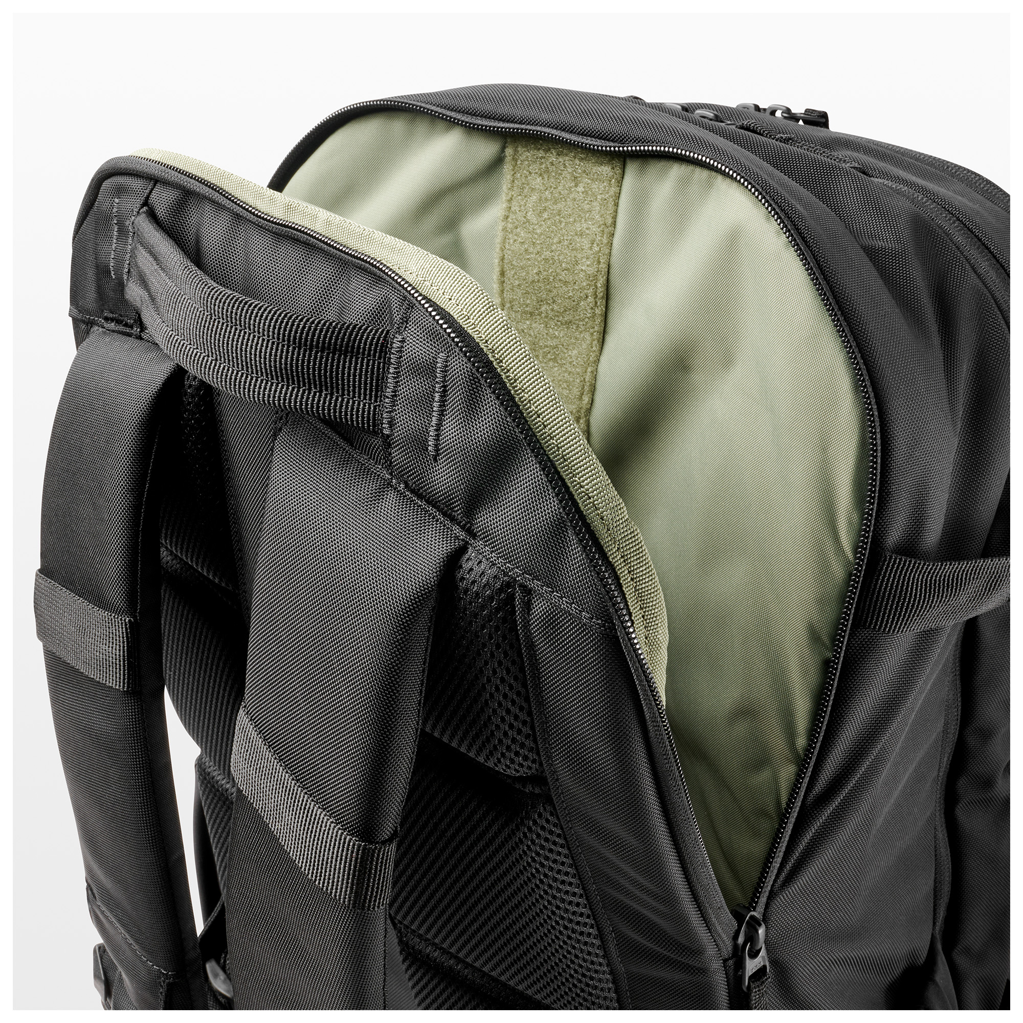 • Wejście boczne (side brief opening) do głównej komory z zamkami blokowanymi — szybki dostęp bez potrzeby otwierania całego plecaka.